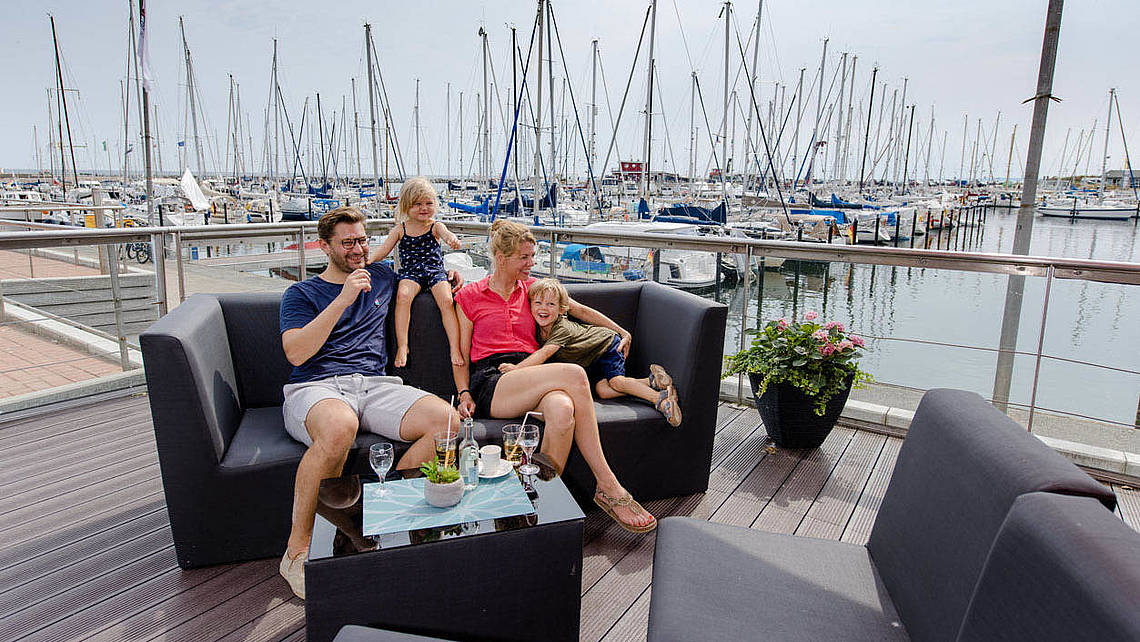 Spitzbergen ist die erste Adresse für Buffet-Fans, Kaffee & Kuchen-Liebhaber und Sonnenfreunde: Mit Blick auf den Yachthafen lädt das Restaurant von früh bis spät zu Gaumenfreuden ein.