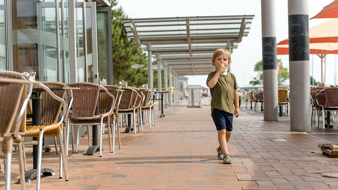 Spitzbergen ist die erste Adresse für Buffet-Fans, Kaffee & Kuchen-Liebhaber und Sonnenfreunde: Mit Blick auf den Yachthafen lädt das Restaurant von früh bis spät zu Gaumenfreuden ein.