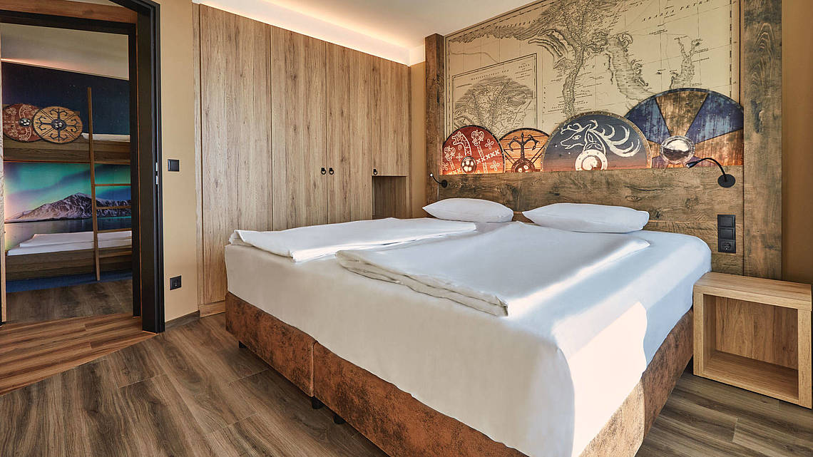 Bei den Wikingerzimmern habt ihr die Wahl zwischen drei Kategorien, die ihr auch mit Meerblick buchen könnt: das Komfort-Zimmer für 1–2 Personen, das größere Superior-Zimmer für ebenfalls 1–2 Personen sowie die Familiensuite für 2–4 Personen.